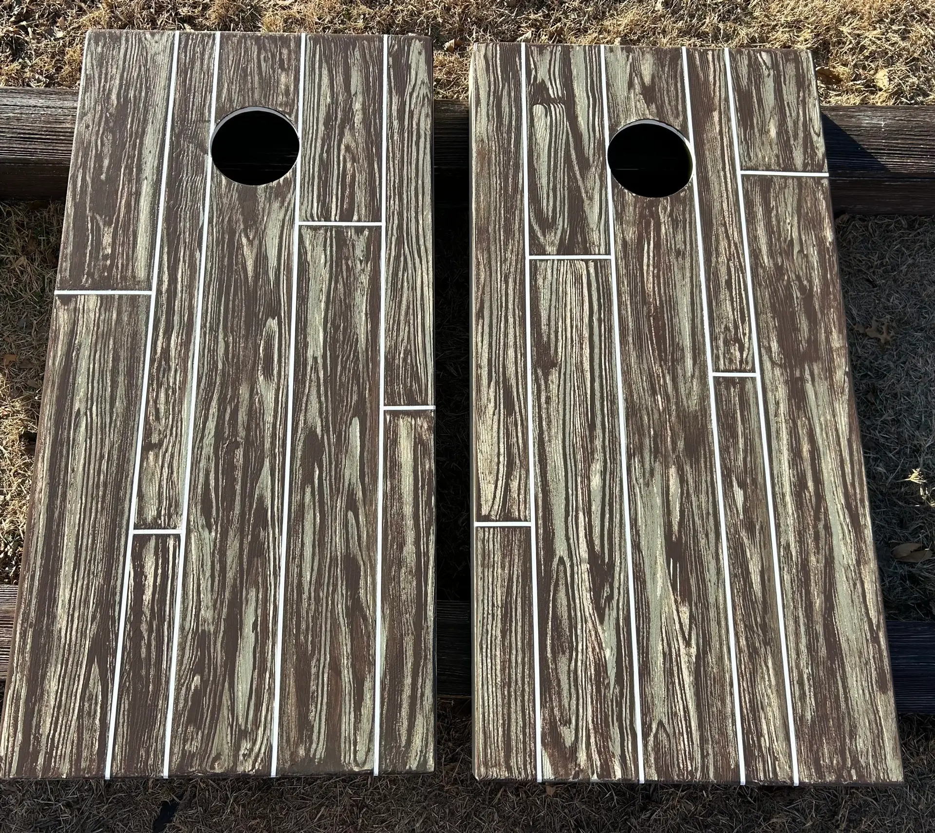 Planked Camouflage – Tan/Green/Brown Cornhole/Bag Toss Board Set